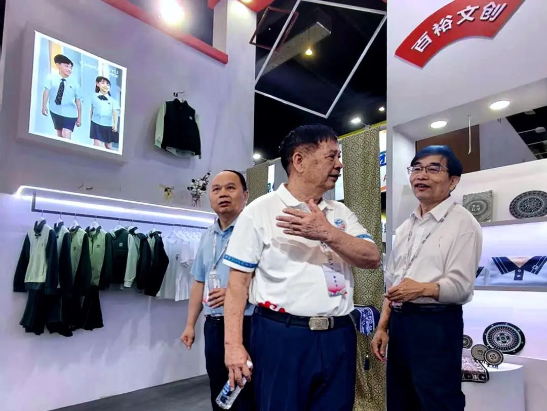 百裕集團(tuán)展位備受矚目,教育部關(guān)心下一代工作委員會(huì)常務(wù)副主任、中國(guó)教育裝備行業(yè)協(xié)會(huì)專家委員會(huì)主任王富,廣西貿(mào)促會(huì)黨組成員、副會(huì)長(zhǎng)、廣西國(guó)際商會(huì)副會(huì)長(zhǎng)劉樹義,自治區(qū)教育廳原二級(jí)巡視員、廣西民族教育發(fā)展基金會(huì)副理事長(zhǎng)陳標(biāo)智,廣西教育技術(shù)和信息化中心主任肖榮亮,廣西教育裝備行業(yè)協(xié)會(huì)創(chuàng)會(huì)會(huì)長(zhǎng)陳鐵華,廣西教育裝備行業(yè)協(xié)會(huì)代會(huì)長(zhǎng)貴尚明等領(lǐng)導(dǎo)嘉賓蒞臨展位指導(dǎo)。他們對(duì)百裕集團(tuán)將民族文化特色與現(xiàn)代校服設(shè)計(jì)理念相融合的創(chuàng)意實(shí)踐表示贊賞,充分認(rèn)可百裕集團(tuán)在推動(dòng)教育裝備高質(zhì)量發(fā)展所作出的積極貢獻(xiàn),領(lǐng)導(dǎo)及嘉賓暖心的關(guān)懷與指導(dǎo),是百裕集團(tuán)在未來(lái)的發(fā)展道路上的強(qiáng)勁動(dòng)力。