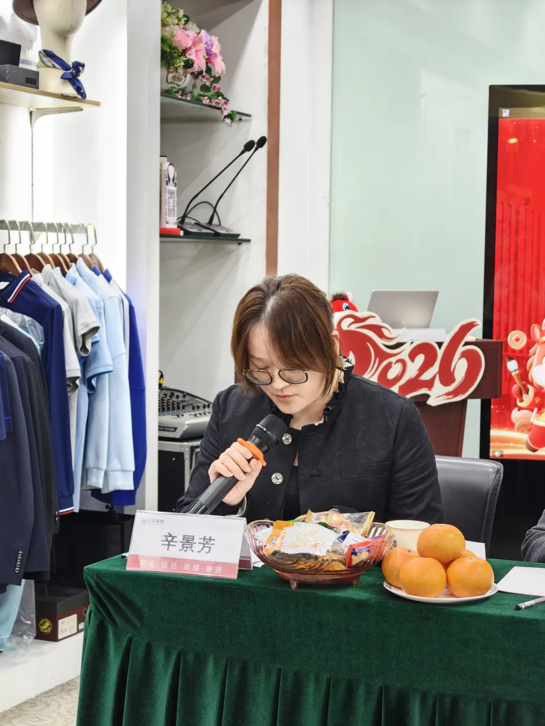 大會(huì)伊始,全體參會(huì)人員在國(guó)歌中起立,拉開序幕。主持人介紹領(lǐng)導(dǎo),感謝員工一年付出,問(wèn)候領(lǐng)導(dǎo),現(xiàn)場(chǎng)氣氛熱烈。會(huì)上,董事長(zhǎng)許曲煌致辭指出,2025年是“十四五”收官、集團(tuán)守正創(chuàng)新關(guān)鍵年,各環(huán)節(jié)凝聚員工智慧汗水。以精益管理和多元業(yè)態(tài)發(fā)展,在服裝主業(yè)實(shí)現(xiàn)從傳統(tǒng)制造到高端“智造”跨越,團(tuán)隊(duì)建設(shè)提升了協(xié)作效率和員工能力。展望2026年,是“十五五”開局、智能與實(shí)體融合攻堅(jiān)年,集團(tuán)將搶抓機(jī)遇,推動(dòng)AI賦能全鏈條,深耕創(chuàng)新,提升主業(yè)。