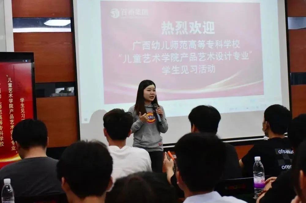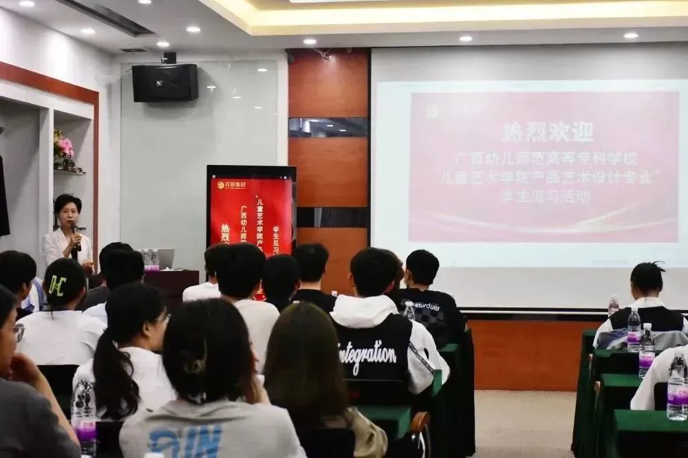 3月21日,廣西幼兒師范高等??茖W校“兒童藝術學院產品藝術設計專業(yè)” 2022級59名學生,在老師們的帶領下,來到百裕集團南寧營銷中心開展見習活動。