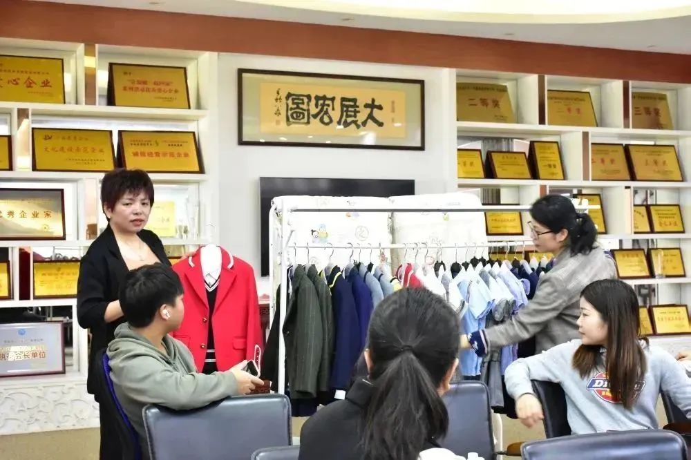 為幫助見習生對百裕集團有更深入的了解,公司組織同學們到樣品陳列展廳進行觀摩、并觀看百裕集團宣傳視頻、服裝生產流程視頻。活動過程中百裕集團的生產中心許總經理詳細的介紹了中小學、幼兒園服飾、床上用品的款式、常用面料、生產執(zhí)行標準等知識,積極為同學們答疑解惑。