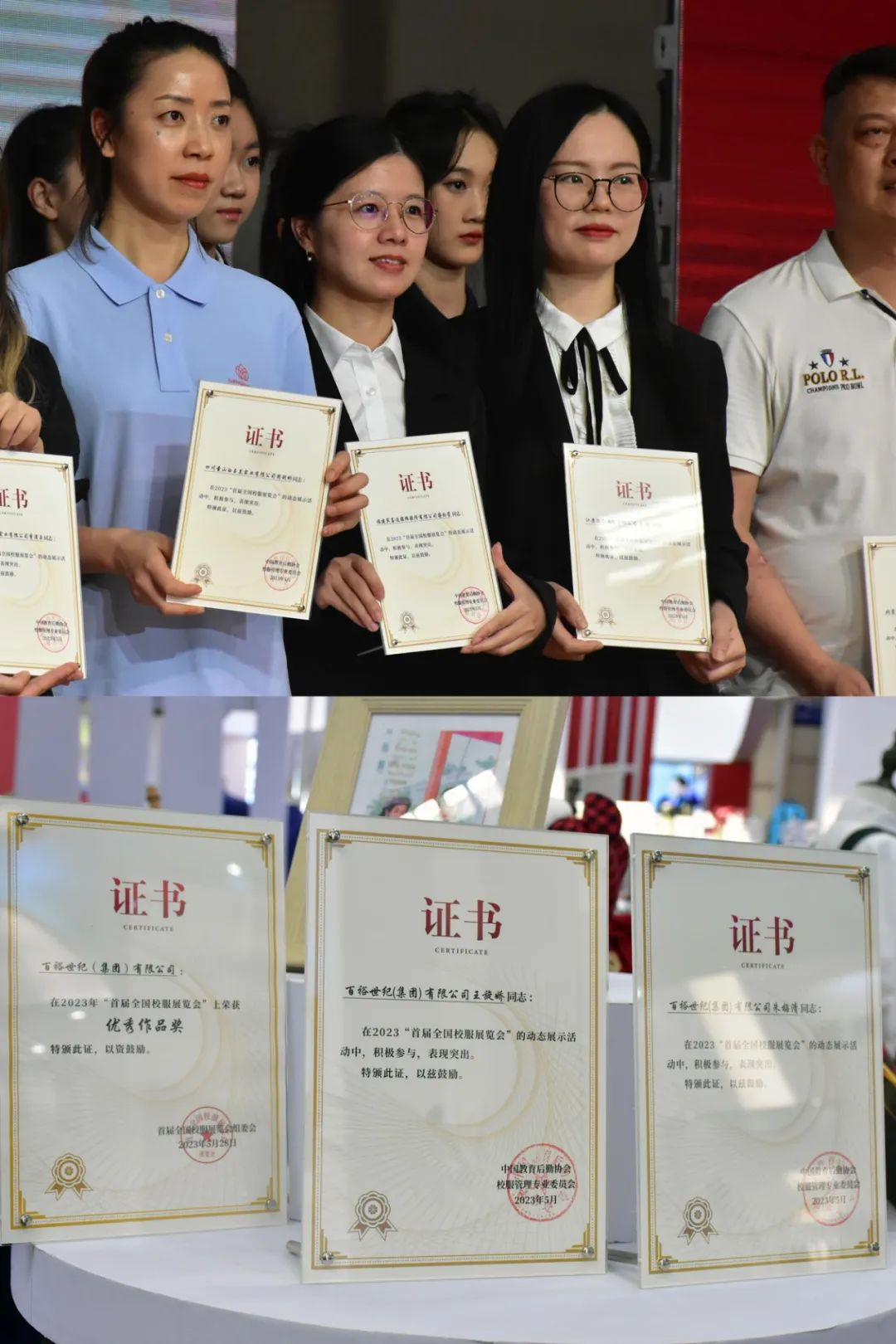 在首屆全國(guó)校服展覽會(huì)校服作品展演活動(dòng)中,百裕世紀(jì)(集團(tuán))作品榮獲了“優(yōu)秀作品獎(jiǎng)”榮譽(yù),研發(fā)中心王旋嬌、朱梅清兩位設(shè)計(jì)師也獲頒榮譽(yù)證書(shū)。