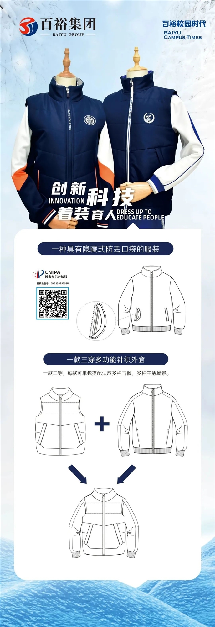 時代發(fā)展帶來的價值觀和審美觀的改變,是百裕集團(tuán)發(fā)展品牌的動力,未來,百裕的隊伍堅持將中華民族文化、國際時尚與校園文化相互結(jié)合。