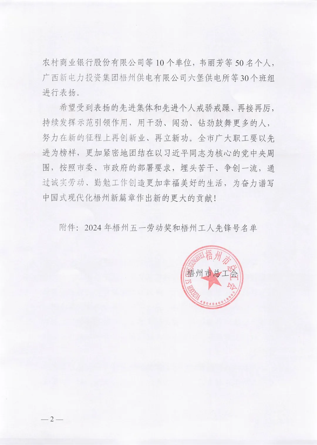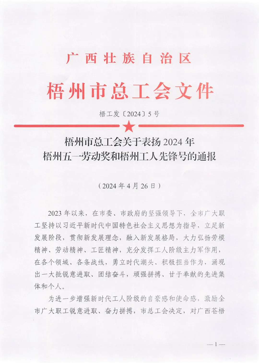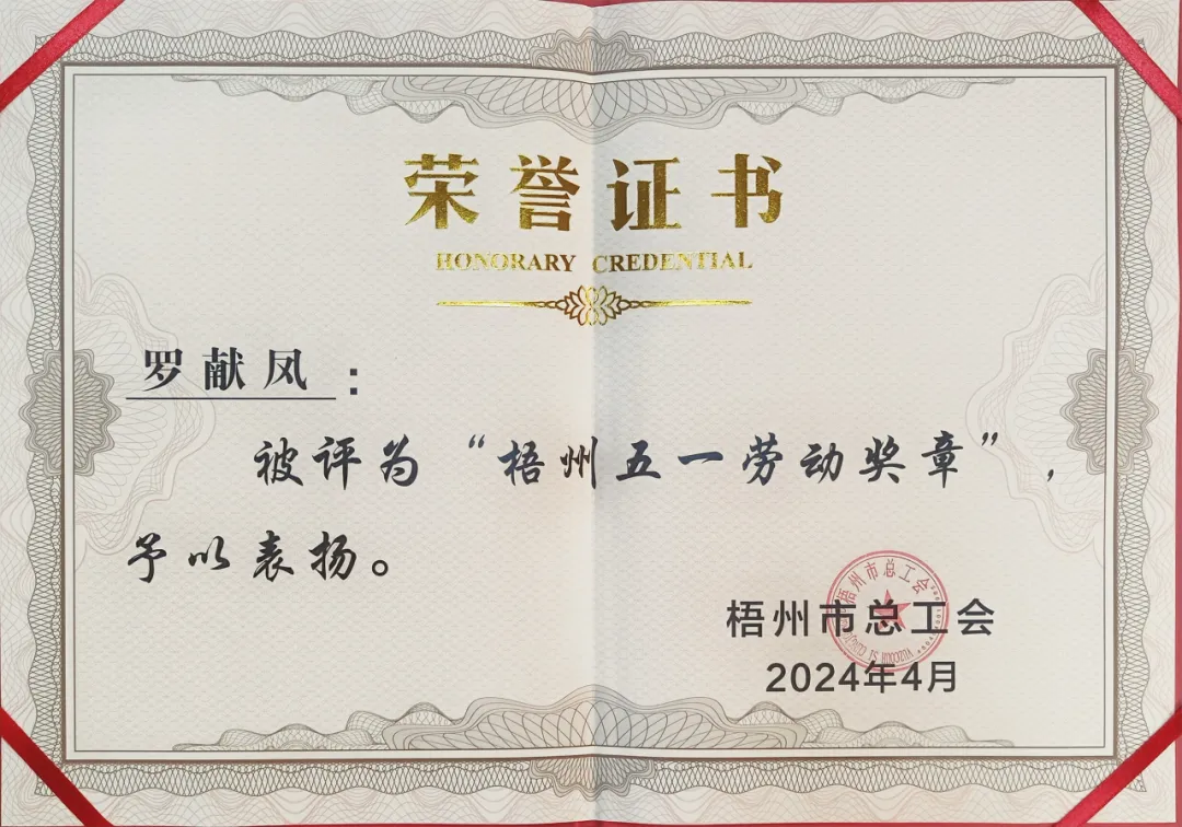 榮獲2024年“梧州五一勞動獎?wù)隆?/span>