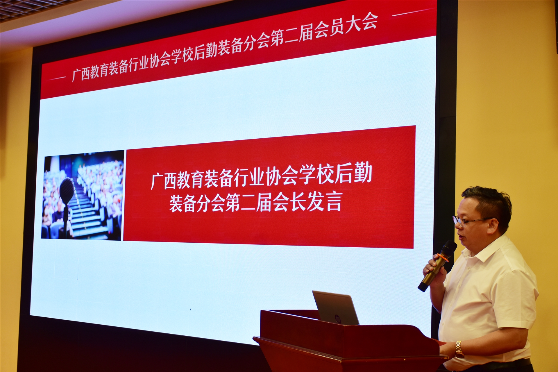 2024年5月14日,廣西教育裝備行業(yè)協(xié)會學校后勤裝備分會第二屆會員大會在南寧湘桂酒店順利召開。會議邀請了協(xié)會有關專家及分會會員單位等30余人參加。廣西教育裝備行業(yè)協(xié)會創(chuàng)會會長陳鐵華,廣西教育裝備行業(yè)協(xié)會駐會顧問、廣西教育技術和信息化中心原副主任陳軍到會指導,協(xié)會秘書長曾雪飛出席了會議。