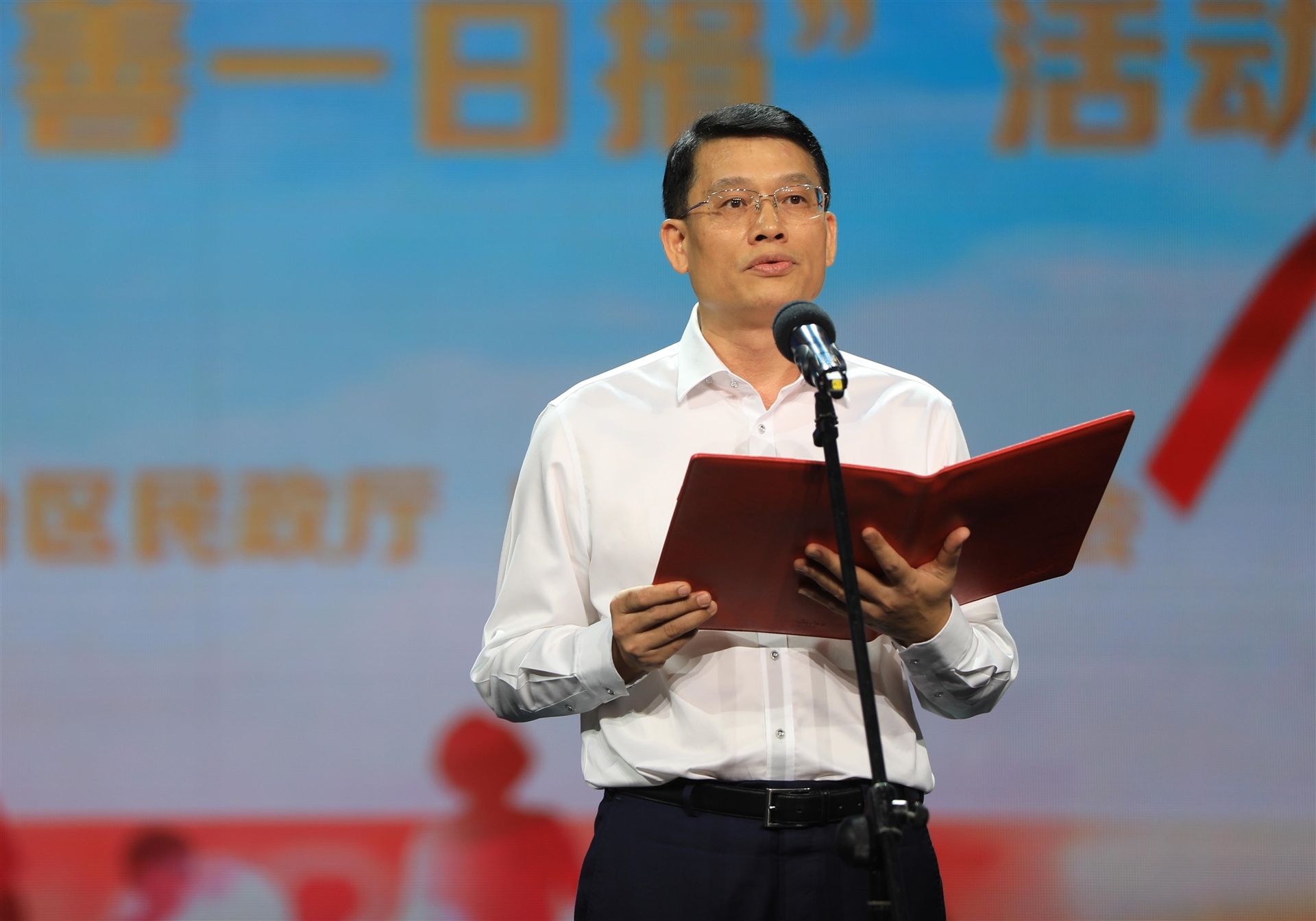 廣西慈善總會(huì)會(huì)長、自治區(qū)政協(xié)第十一、十二屆原副主席劉正東宣讀慈善倡議書