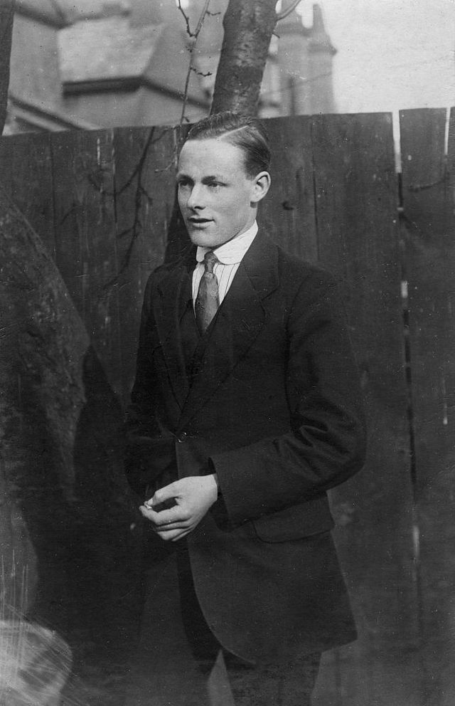 20世紀(jì),攝影圖,穿西服的男人。這個時期的領(lǐng)帶已經(jīng)出現(xiàn)了各種花色和不同的紋路。