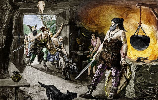 公元前6世紀(jì)左右,插畫,日耳曼人。關(guān)于領(lǐng)帶的起源一種傳說認(rèn)為,領(lǐng)帶最早起源于日耳曼,日耳曼人居住在深山老林里,茹毛飲血,披著獸皮取暖御寒,為了不讓獸皮掉下來,他們用草繩扎在脖子上,綁住獸皮.這樣一來,風(fēng)也不能從頸間吹進(jìn)去,既保暖以防風(fēng),后來他們脖子上的草繩被西方人發(fā)現(xiàn),逐步完善成了領(lǐng)帶。