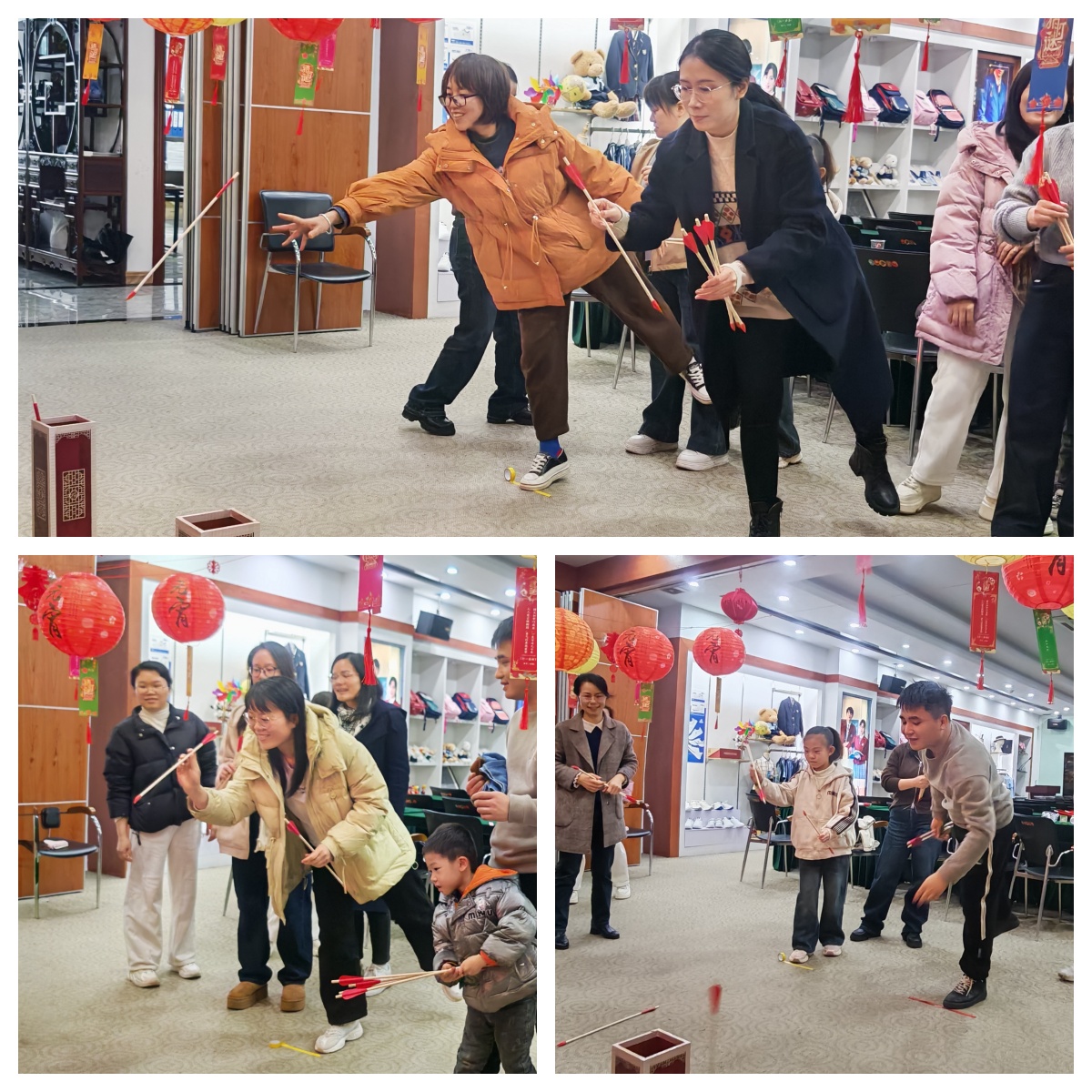 活動(dòng)規(guī)則是每人手持五支箭,站在距離壺一米五遠(yuǎn)的位置,將箭投入壺中,投中數(shù)量多者獲勝。員工們紛紛摩拳擦掌,躍躍欲試。只見(jiàn)各位同事們眼神專注地盯著壺口,手臂輕輕向后揚(yáng)起,然后迅速發(fā)力向壺中投箭?,F(xiàn)場(chǎng)歡聲不斷,大家都沉浸在投壺的樂(lè)趣中。