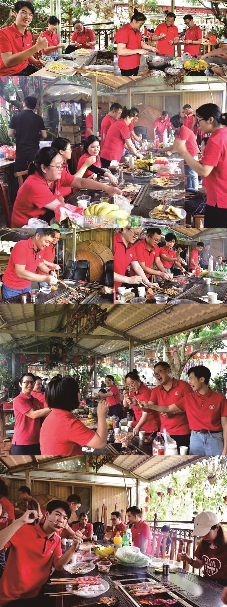 活動在農(nóng)莊開展,公司提前給員工準(zhǔn)備了酸辣的鳳爪,爽脆的青瓜,涼拌木耳等,都引誘著同事們饑腸轆轆的胃,讓人垂涎。在燒烤過程中員工們互相配合洗菜、串肉、生火、加炭,場面好不熱鬧。大家都拿出了“十八般武藝”,充分展示出自己的動手能力和美食鑒賞能力,在制作和分享美味的過程中,每個人笑容滿面,洋溢著喜悅的氣氛。