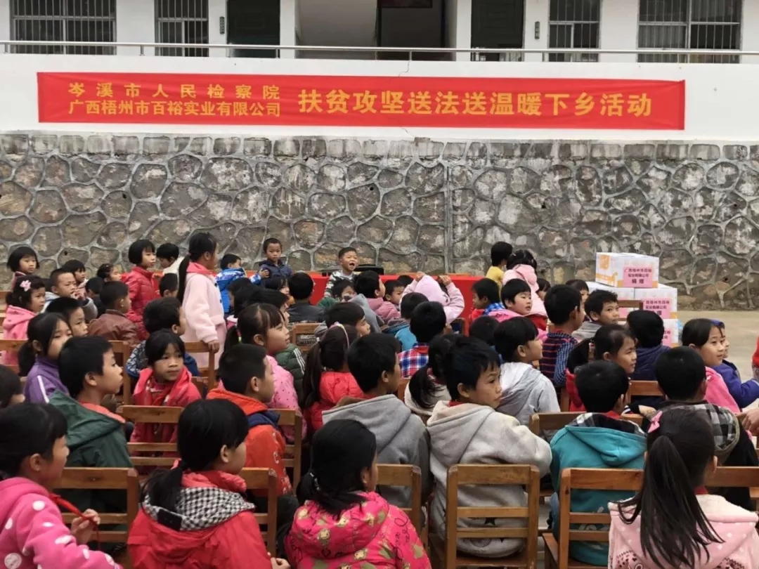 近日,隨著冬日的冷空氣驟然南下,緊隨其后迎來一群陽光使者,他們是來自岑溪市人民檢察院與百裕集團的愛心慰問組。經過前期的緊密對接,1228日,岑溪市人民檢察院與百裕集團慰問組來到岑溪市筋竹鎮(zhèn)石芹小學,為孩子們送來了188套飽含暖意的冬衣。